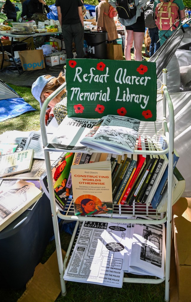 Foremost, this is the message of the Gaza Solidarity Encampment last spring and it is the message of the 2024-25 Disorientation Guide. The mechanisms of Penn’s complicity are detailed in our other articles: Who Owns Penn? – Palestine Writes, Penn’s Wrongs – Penn’s Ties to Hillel International Harm Both Jewish Students and Palestinians – Crackdown: Open Expression in Post-Encampment Penn. It is important, however, to also give space and focus on the heart of the struggle: the needs of the Palestinians facing genocide from an apartheid state, Israel. So, let us focus again on Palestine and the liberation of all peoples. From victory to struggle, police violence to joy, through the encampment, let us walk back into the fight for freedom.