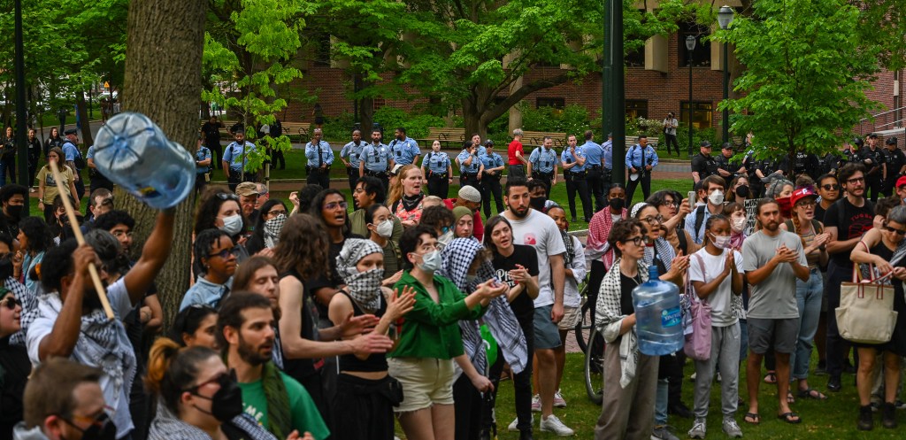 May 10, at 5:30am, Philadelphia Law Enforcement (i.e. PPD) was dispatched to the Gaza Solidarity Encampment — The Freedom Camp — on College Green at the behest of the UPenn administration. Hundreds of bike cops, riot cops, strike force, counterterrorism, and Penn Police stormed the camp with wooden batons in hand… Even onlookers were harassed with batons, including press, medics, and other students and faculty.